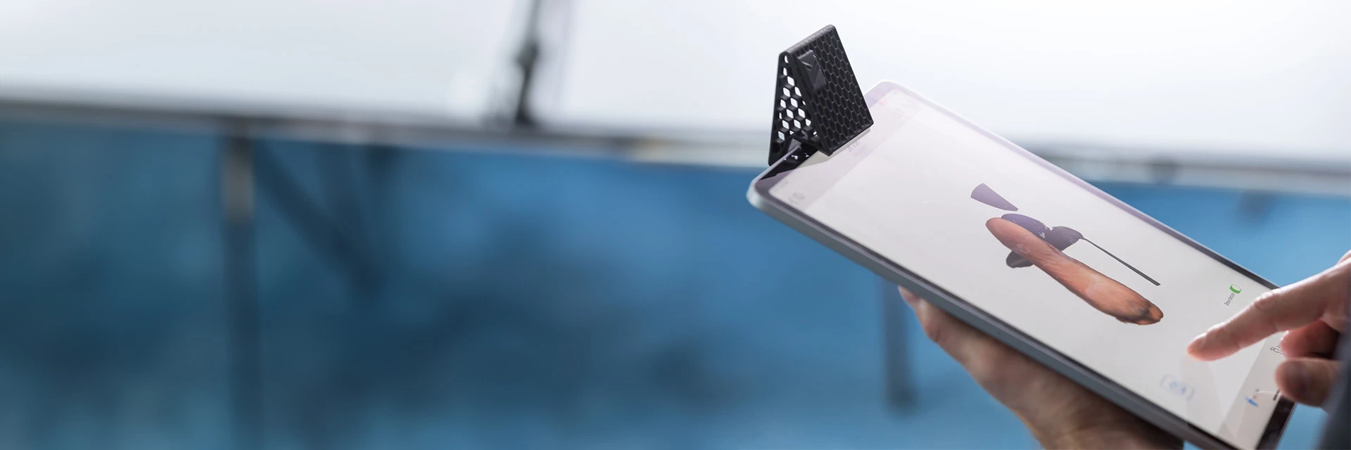 測定の簡単さは勿論、1タップでFootscanソフトウェアにも転送可能。高価な3Dスキャン機材の購入や、手作業の採寸・採型無くして足のモデルを収集可能です。