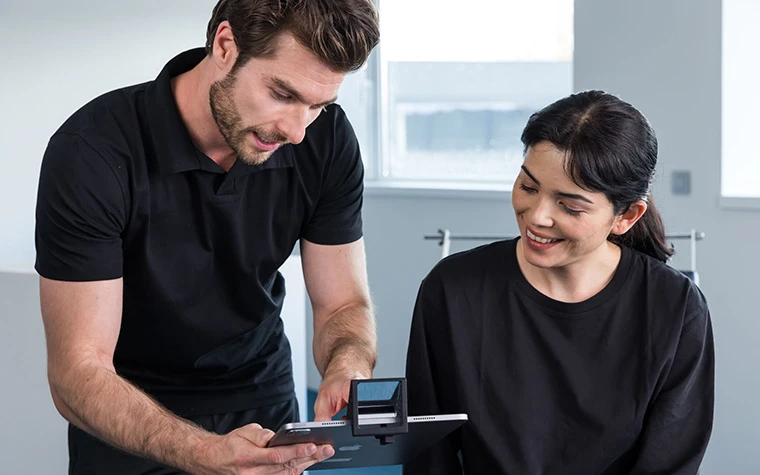 footscanと連携させインソール設計の検証を出来たり、音声制御機能を使用してハンズフリーで測定作業を実行することも出来ます。